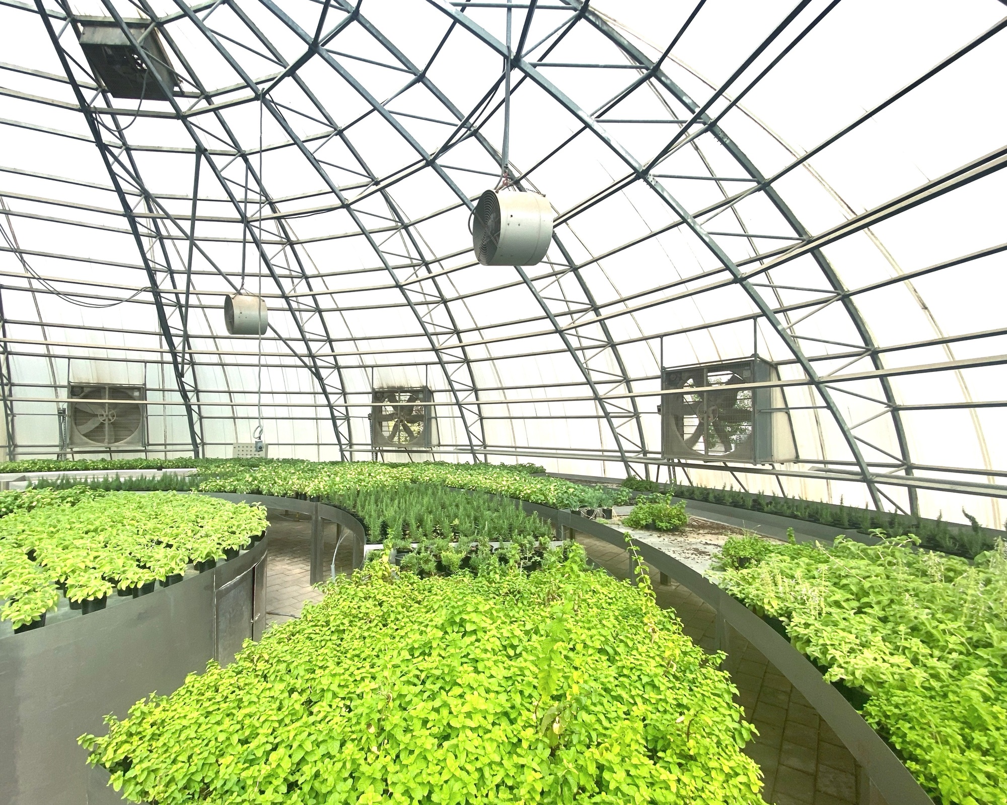Unique dome shaped climate controlled desert greenhouse with fresh herbs for local consumption